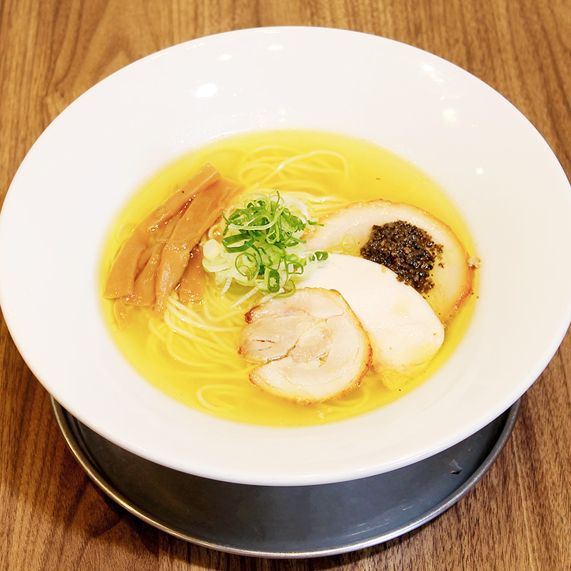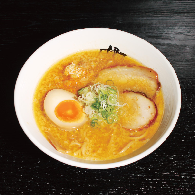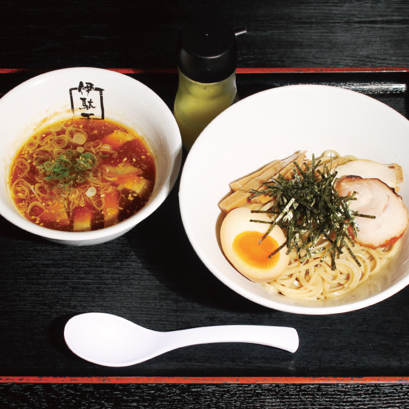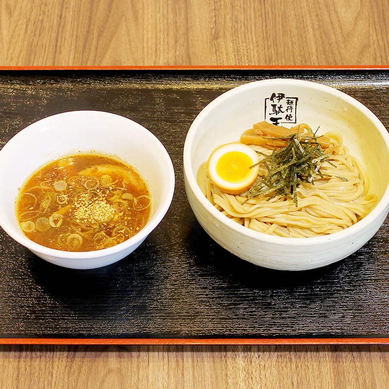 「濃厚味噌のつけダレに自家製のトリュフソースをかけ上品に香り良く仕上げました。麺は全粒粉入りの平打ち麺を使用してございます。